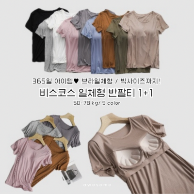 [수입] 비스코스 일체형 반팔티 1+1 (-4/2마감)