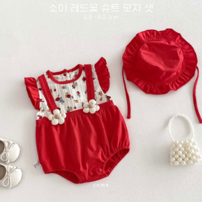 [수입] 소이 레드꽃 슈트 모자 셋 (-4/2마감)