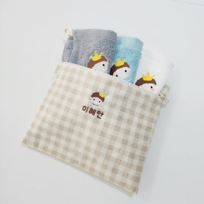 핑크,옐로,민트체크 파우치에비해 두께감이 있습니다.
